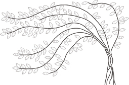 To brief us, they took a photograph of the wall to be used and with a felt-tip pen, drew a sketch of what they had in mind (bottom left). Our designers then turned this into working diagrams (bottom right and left) for approval. The final tree was then manufactured as shown (upper left).